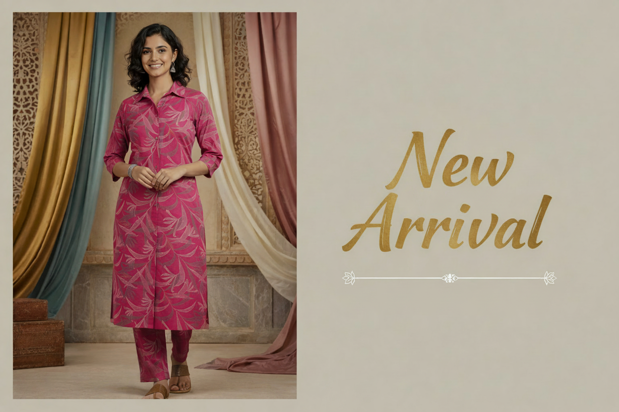 Floral Cotton Kurta Set in Earthy Red #RCO1002